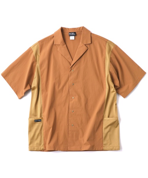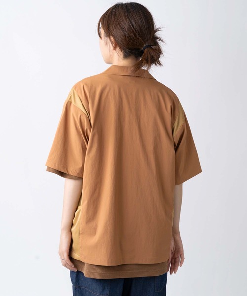 マイクロナイロン素材の開襟シャツ。