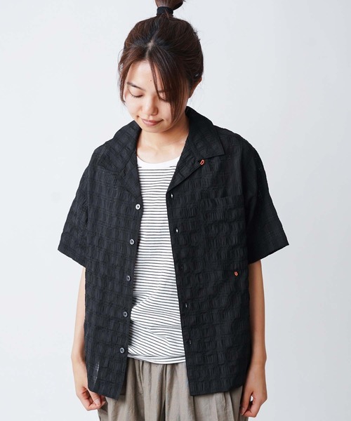 シアサッカーチェック開襟シャツ