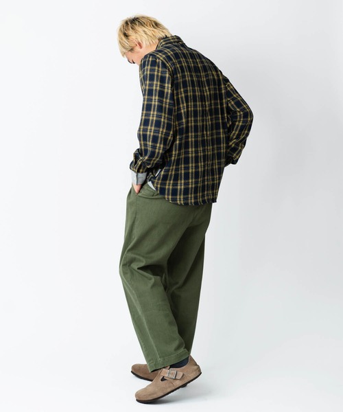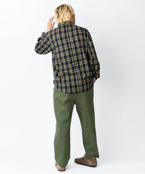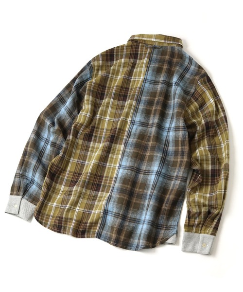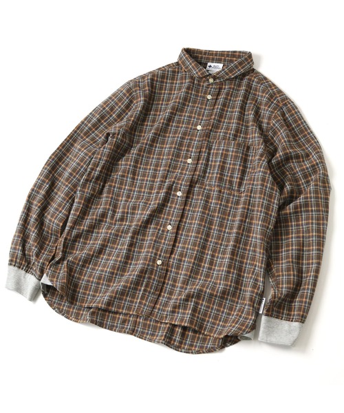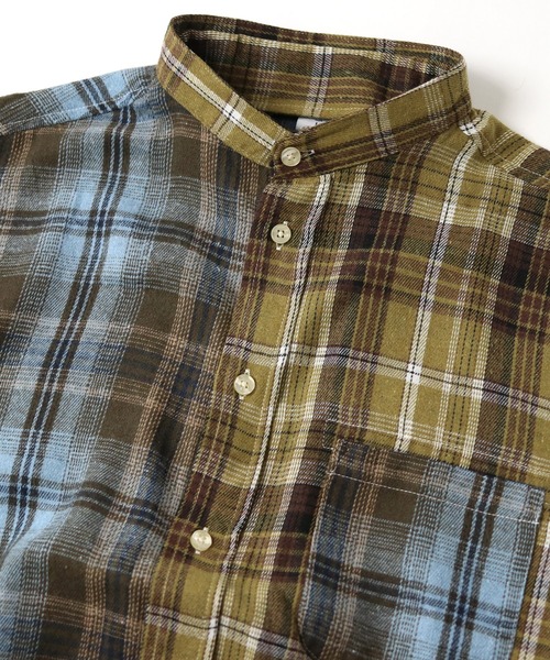 クレイジーパターン 2WAYカラ― チェック バンドカラー ネルシャツ