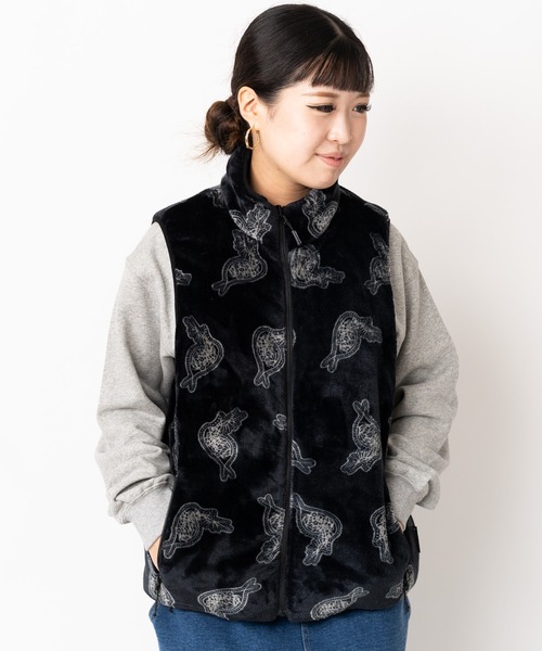 ボア面が無地とポップな総柄から選べ、防風仕様のハイネック、