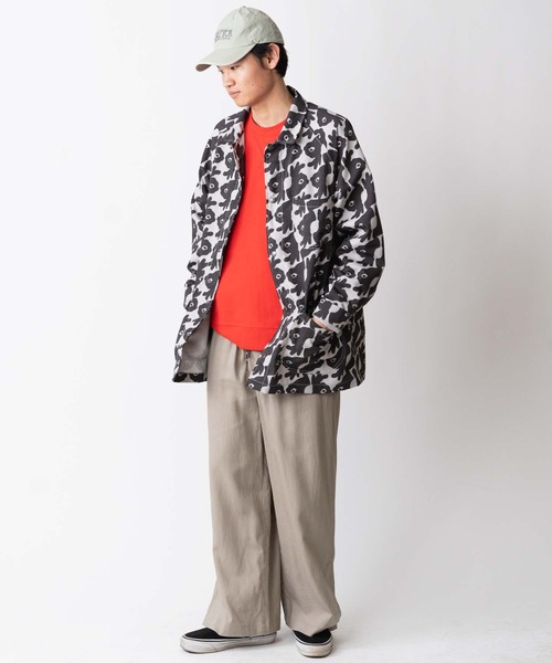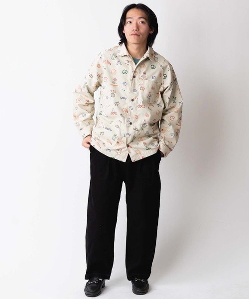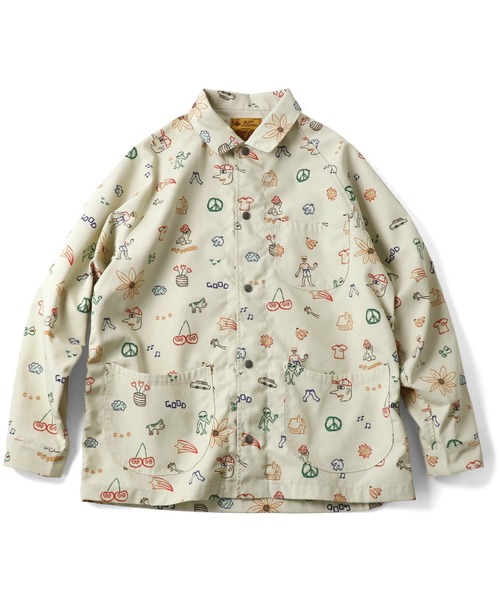 ワークウエアを総柄でポップにアレンジしたカバーオール