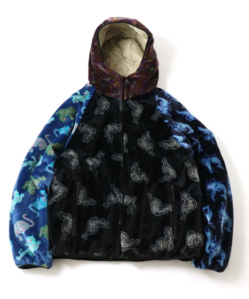 キルト×ハッピーペイントボアリバーシブルフードジャケット