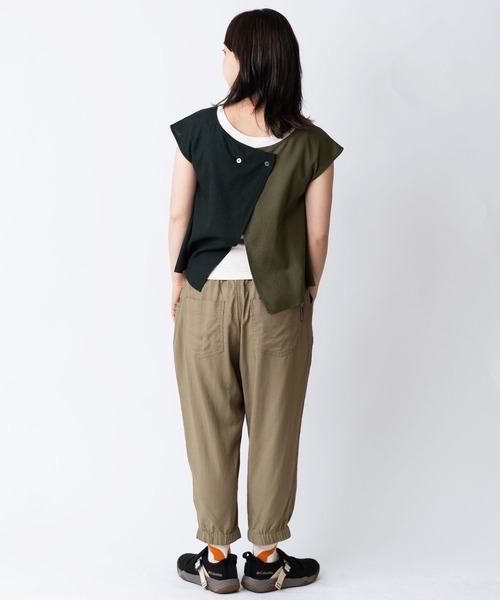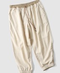 ウエストはゴム/紐仕様、裾にもゴムが入っています。
