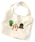 お茶目な3人組の刺繍がついたエコバッグ