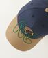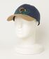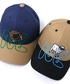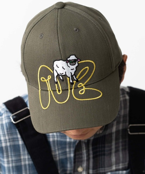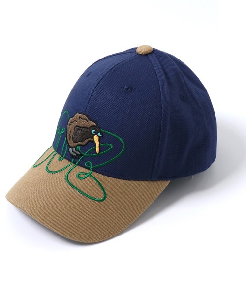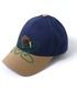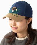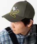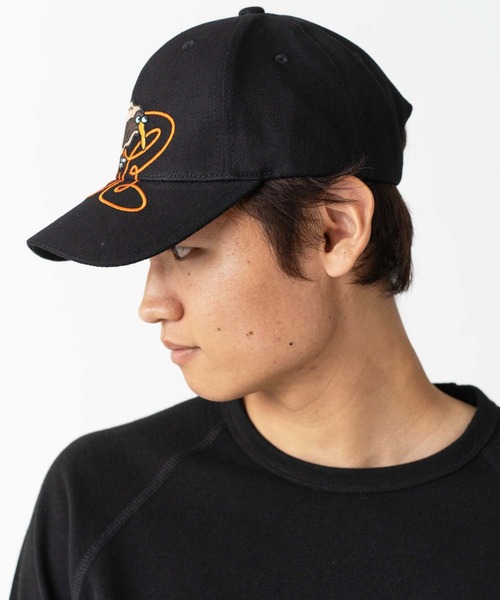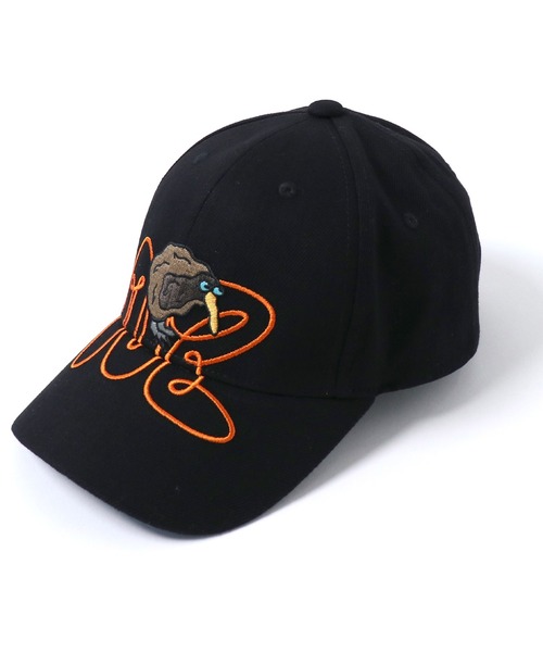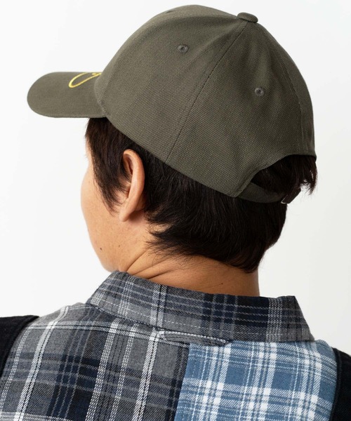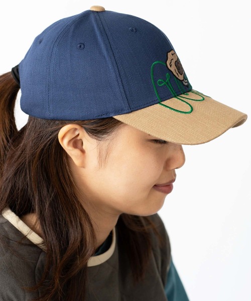 ツバにかけても大きなロゴ刺繍の入ったキャップ