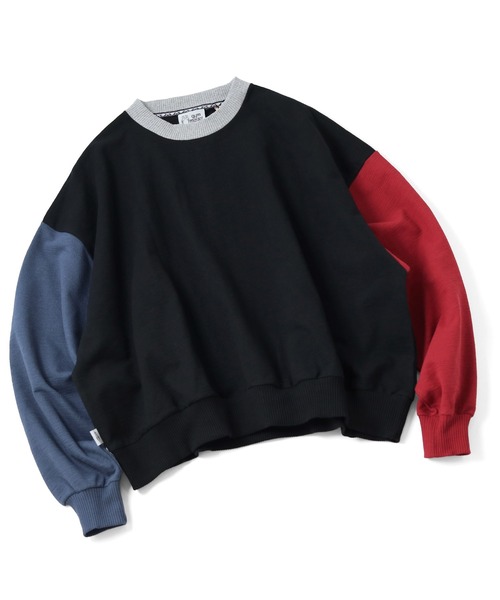 ブロックインレーボリュームスリーブクルーネック