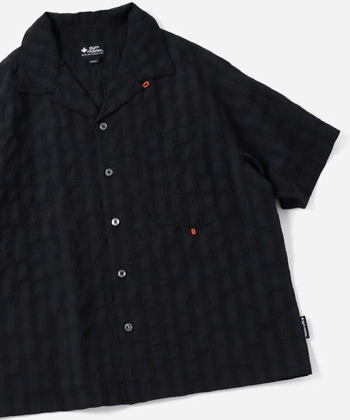 シアサッカーチェック開襟シャツ