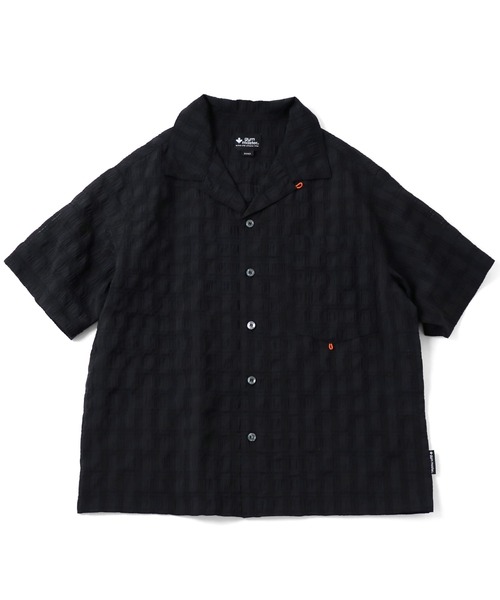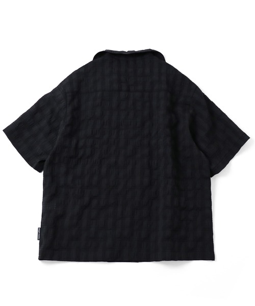 格子状になった開襟シャツ。