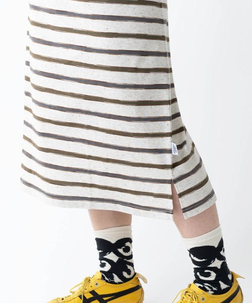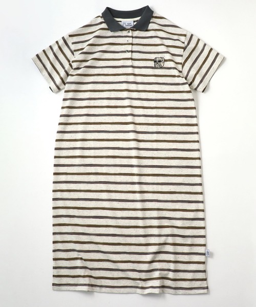 ブルドッグ刺繍ボーダーワンピース