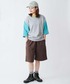 ブロックインレー7分袖Tee
