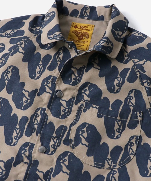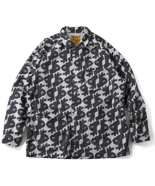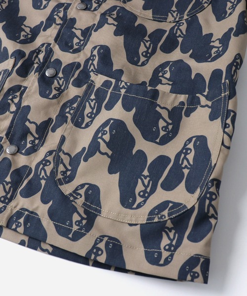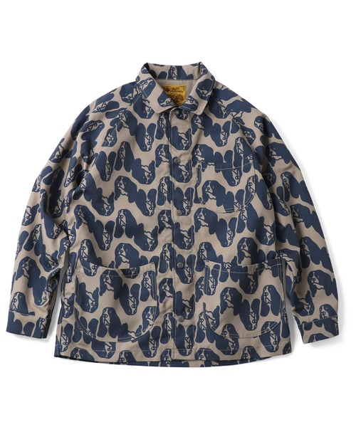 ワークウエアを総柄でポップにアレンジしたカバーオール