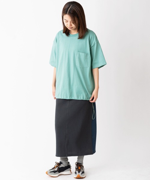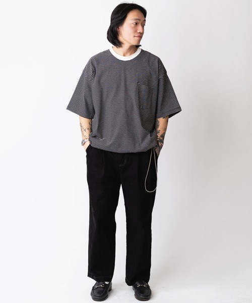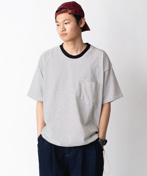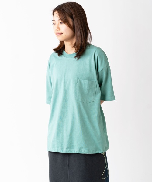 シンプルなポケットTEEは、ワイドかつビッグシルエット。
