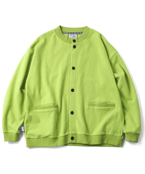 袖口/裾口/スタンドネックにゆる編みのリブを使っており