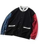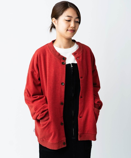 袖口/裾口/スタンドネックにゆる編みのリブを使っており