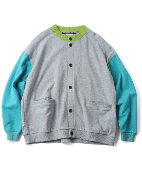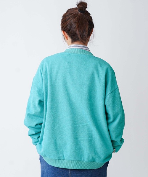 袖口/裾口/スタンドネックにゆる編みのリブを使っており