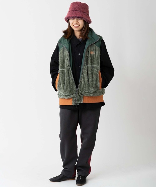 ボア ナイロン リバーシブルジャケット カラフル フリース ベスト