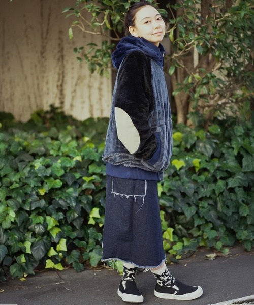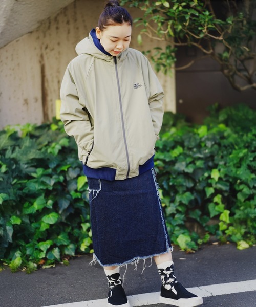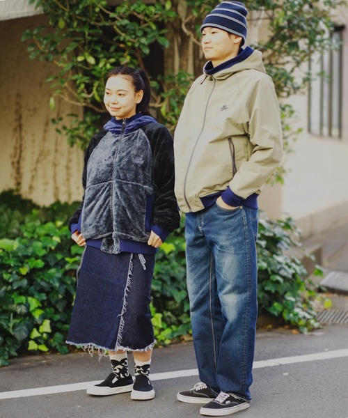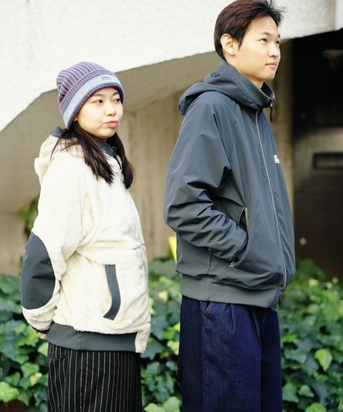 ボア/ナイロンフードジャケット。
