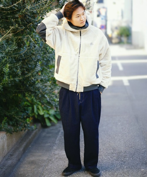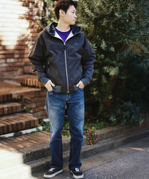 リバーシブルボアxリップストップフードジャケット