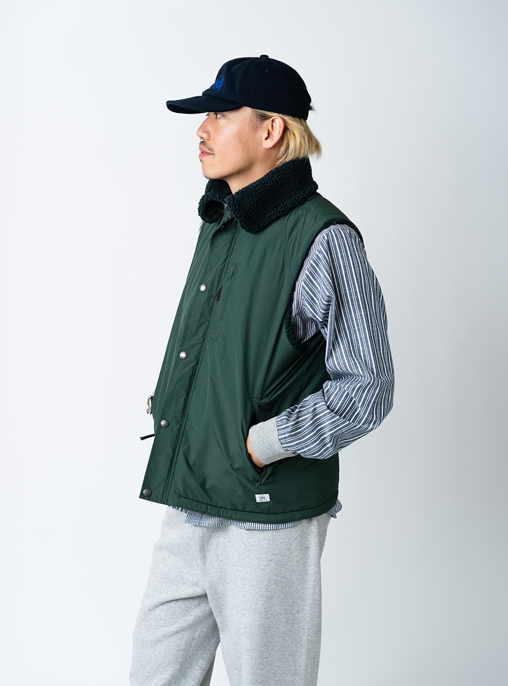 リバーシブルタイプのボア/ナイロンベスト。