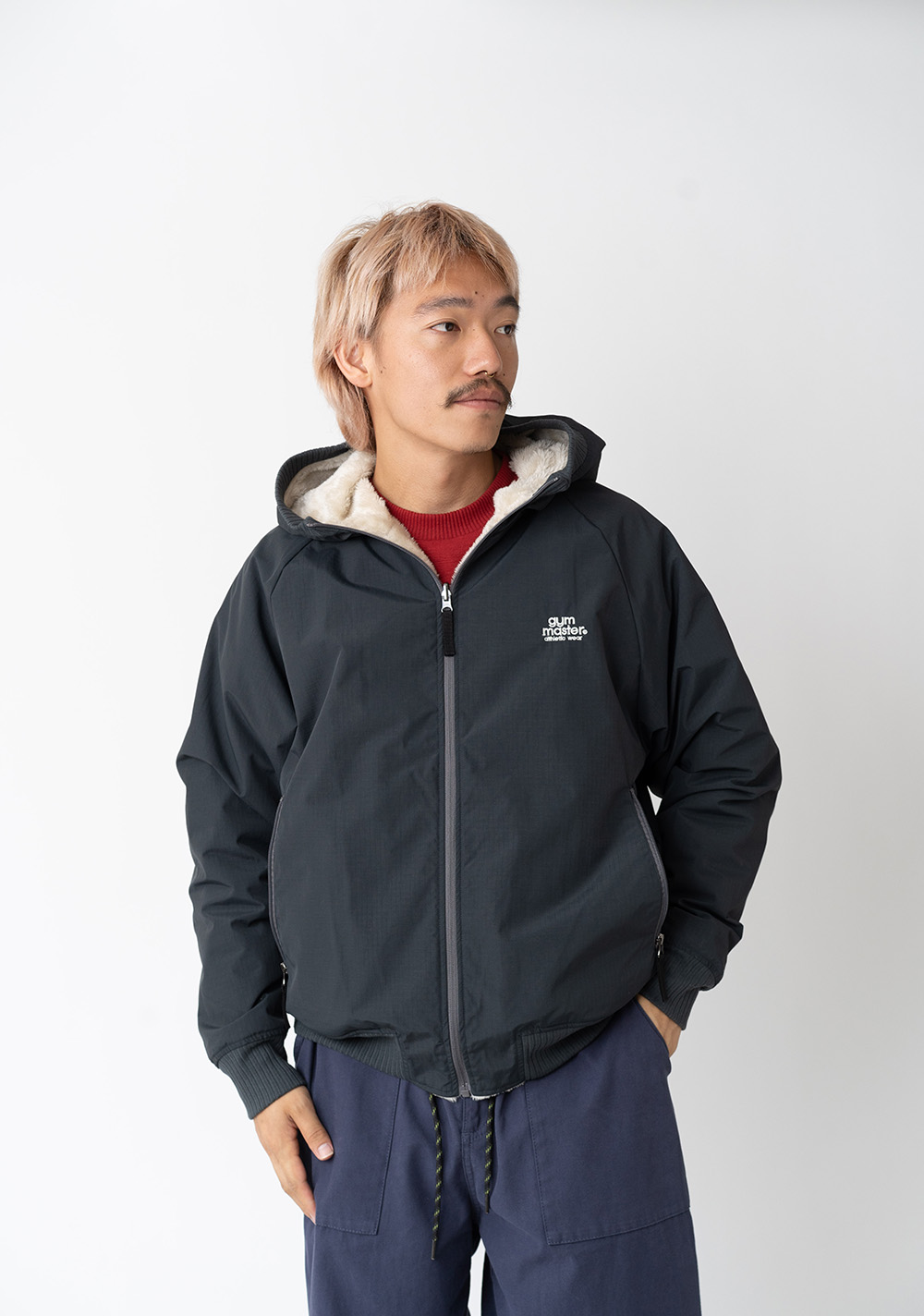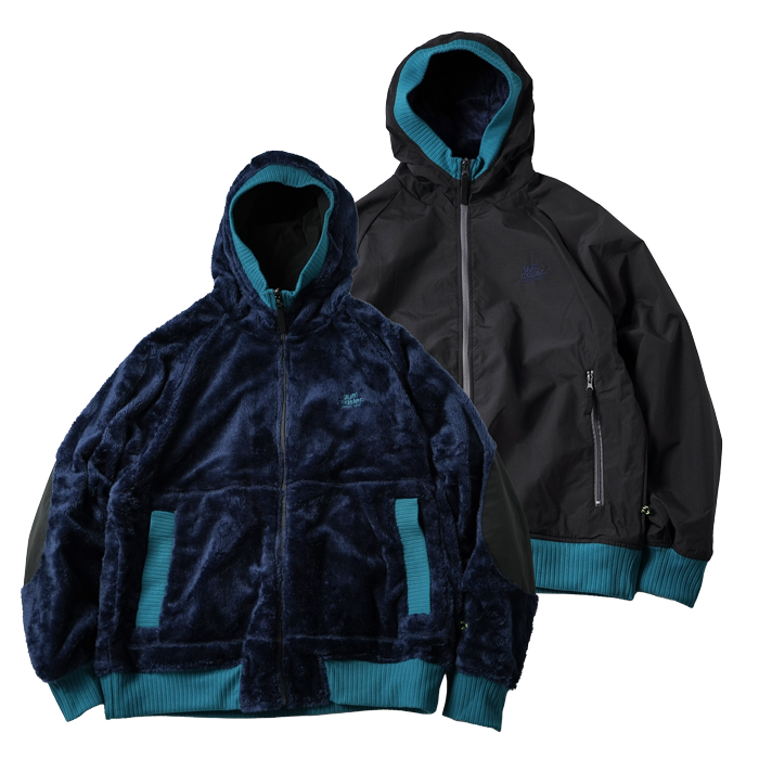 リバーシブルボアxリップストップフードジャケット