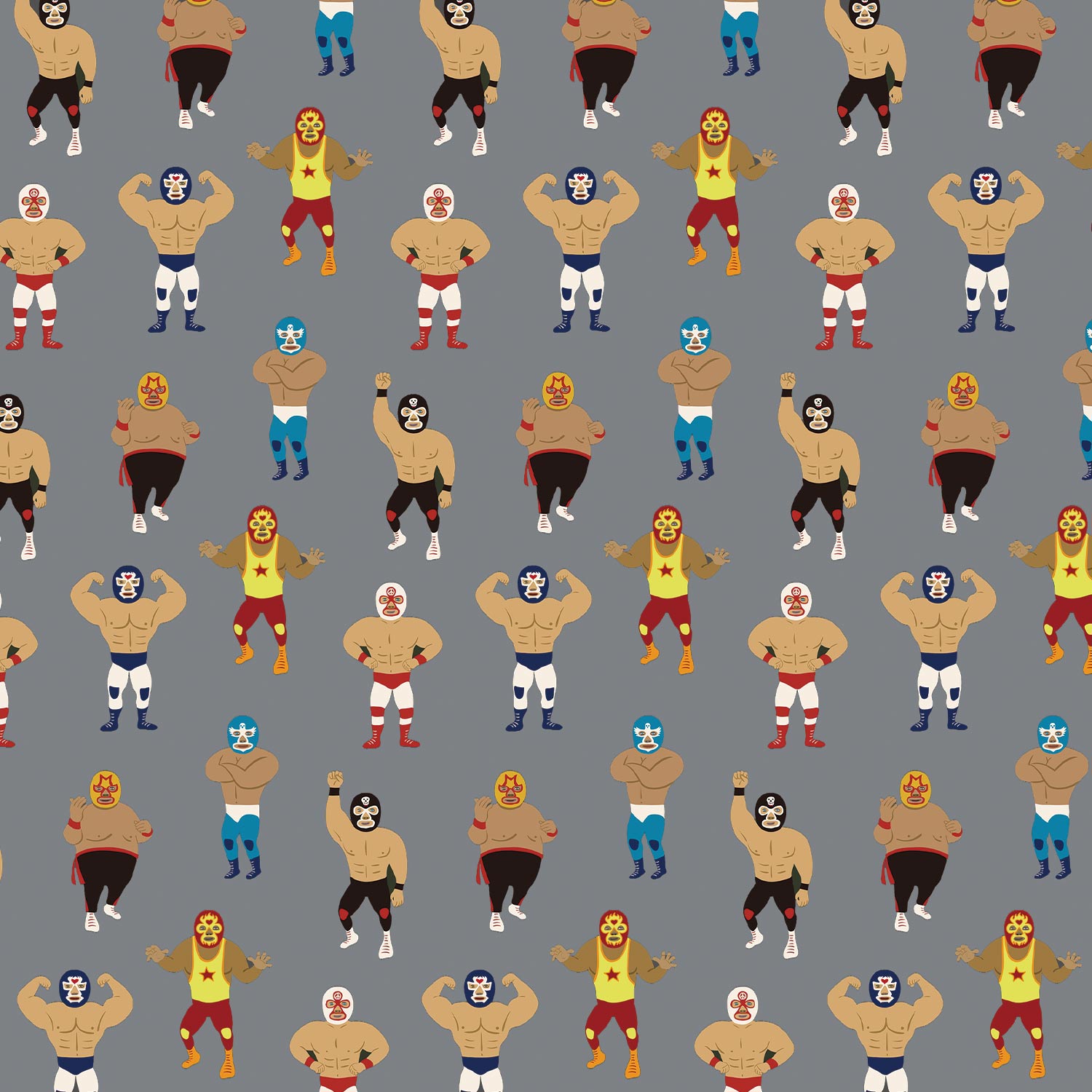 個性豊かな覆面レスラーがリングを飛び出し賑やかな総柄に!