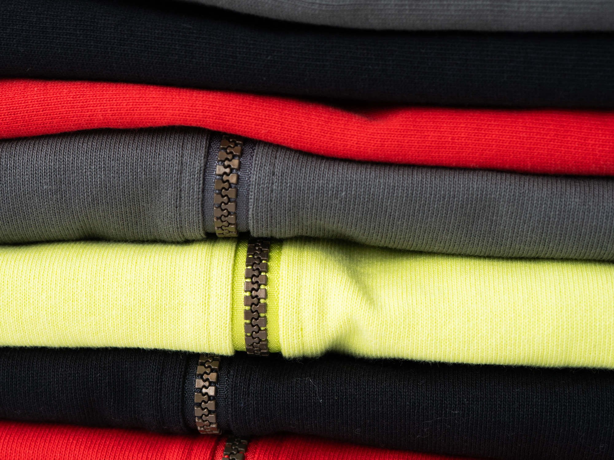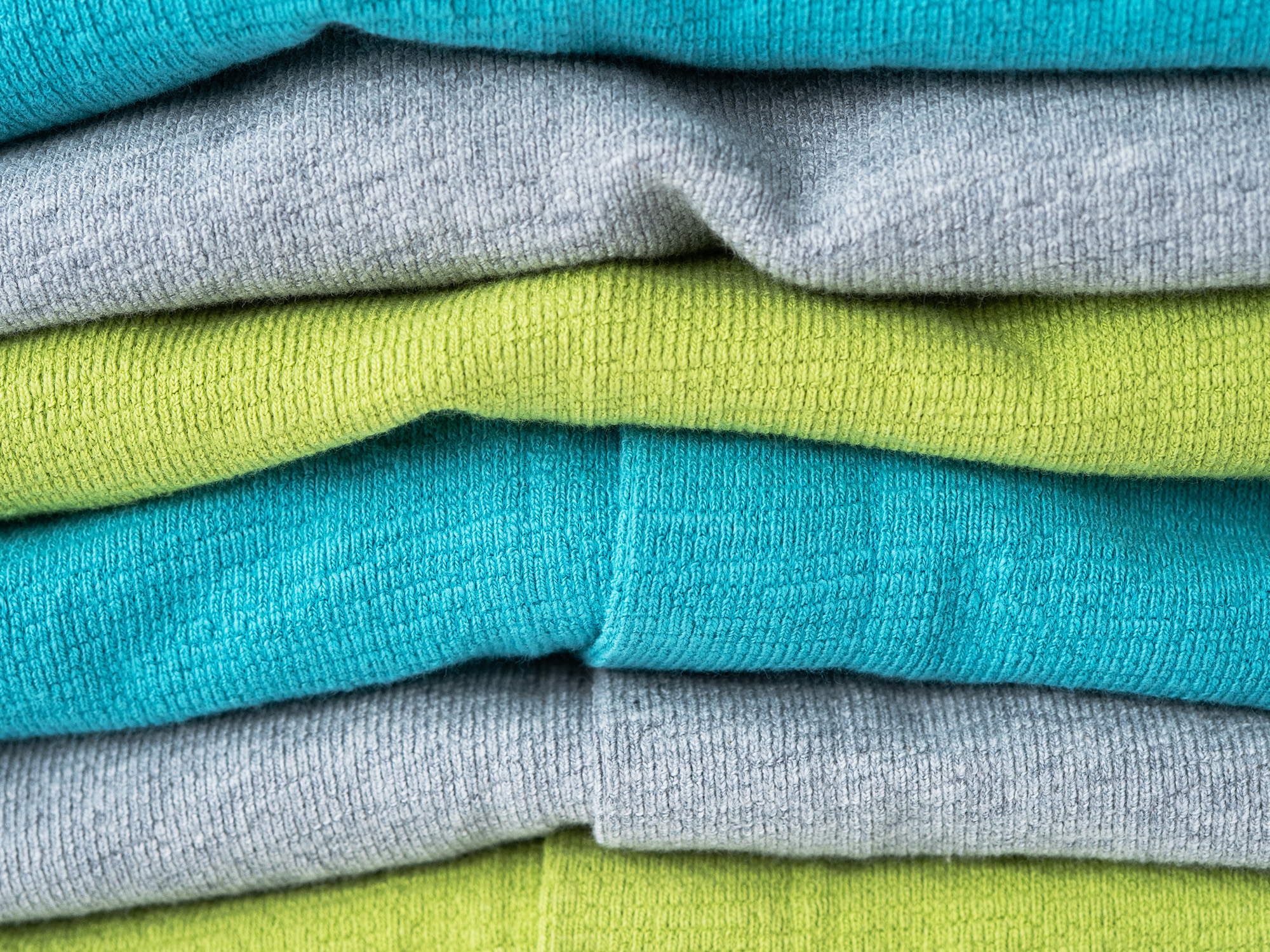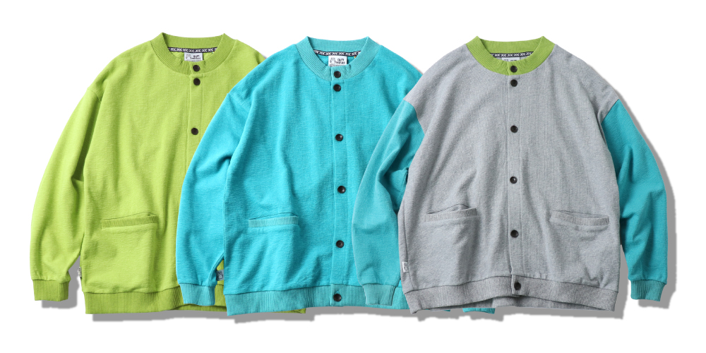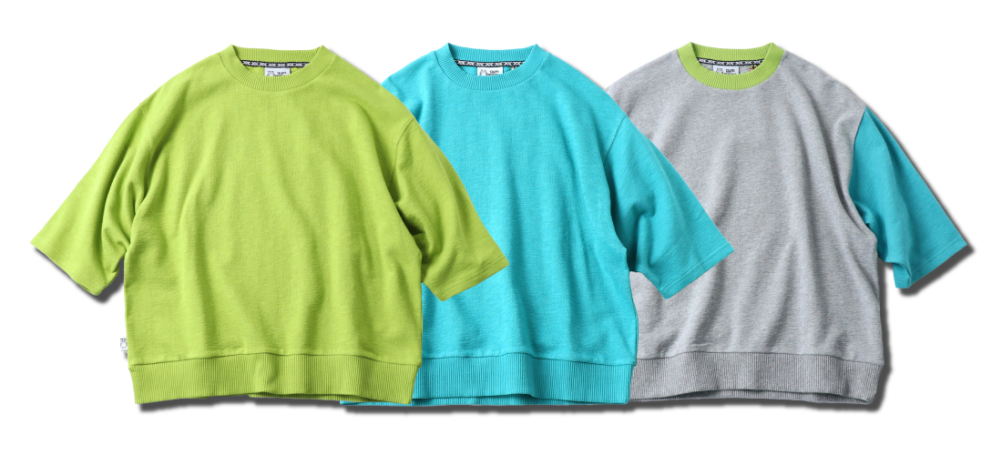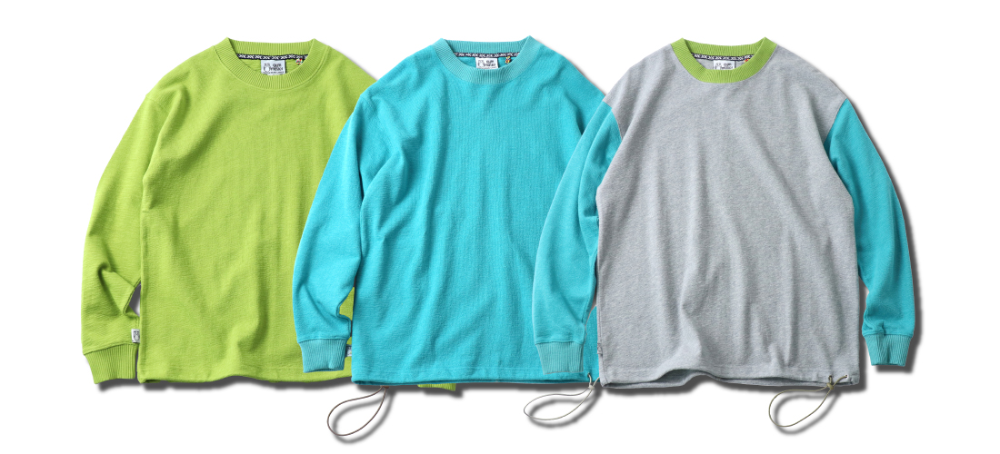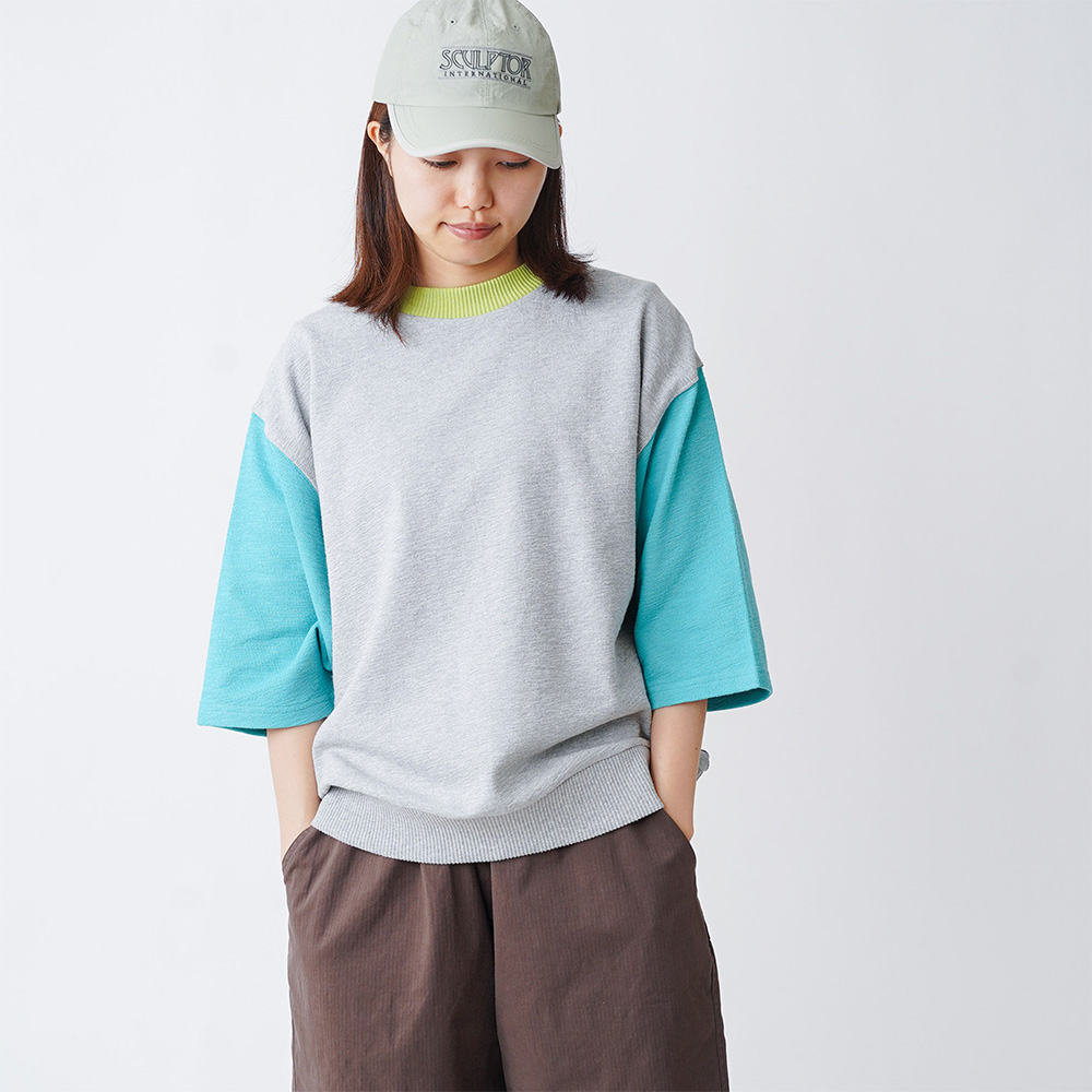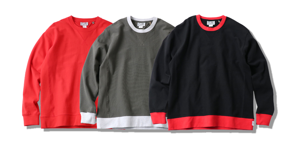 3本で編まれているスウェットに対して2本で編み上げたブロックインレー。