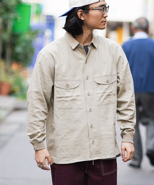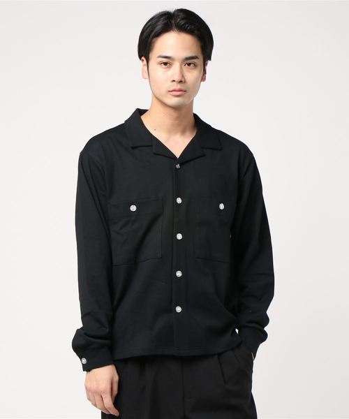 カラフルスナップボタン開襟ロングスリーブシャツ