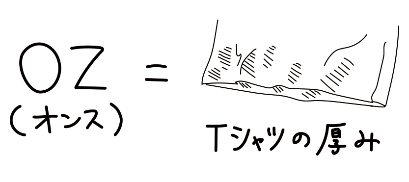 現在Tシャツ生地の生地スペックとして厚さを表示する際にオンスを使うことが多くなっています。