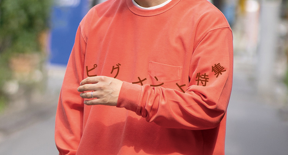 ピグメントとは水に溶けない色素のことで、特殊溶剤と顔料を使って生地を染色させる加工技術をピグメント加工(=ピグメントダイ)と言います。普通の洋服は染料を使って染色しますが、特殊溶剤によって顔料による染色を可能にさせます。ピグメント加工による顔料は内部に染み込まず、表面にくっついているイメージです。洗うごとに色が剥がれ落ち、絶妙な色落ち感を表現する際に用いられます。洗濯するごとに独特のフェード感が表れるので着込むごとに楽しみが増していきますね。