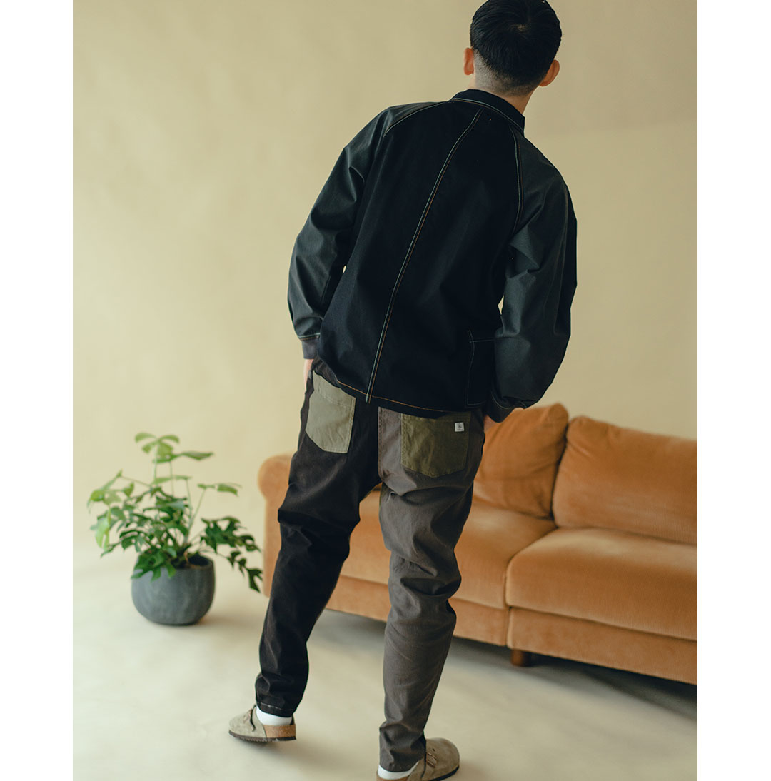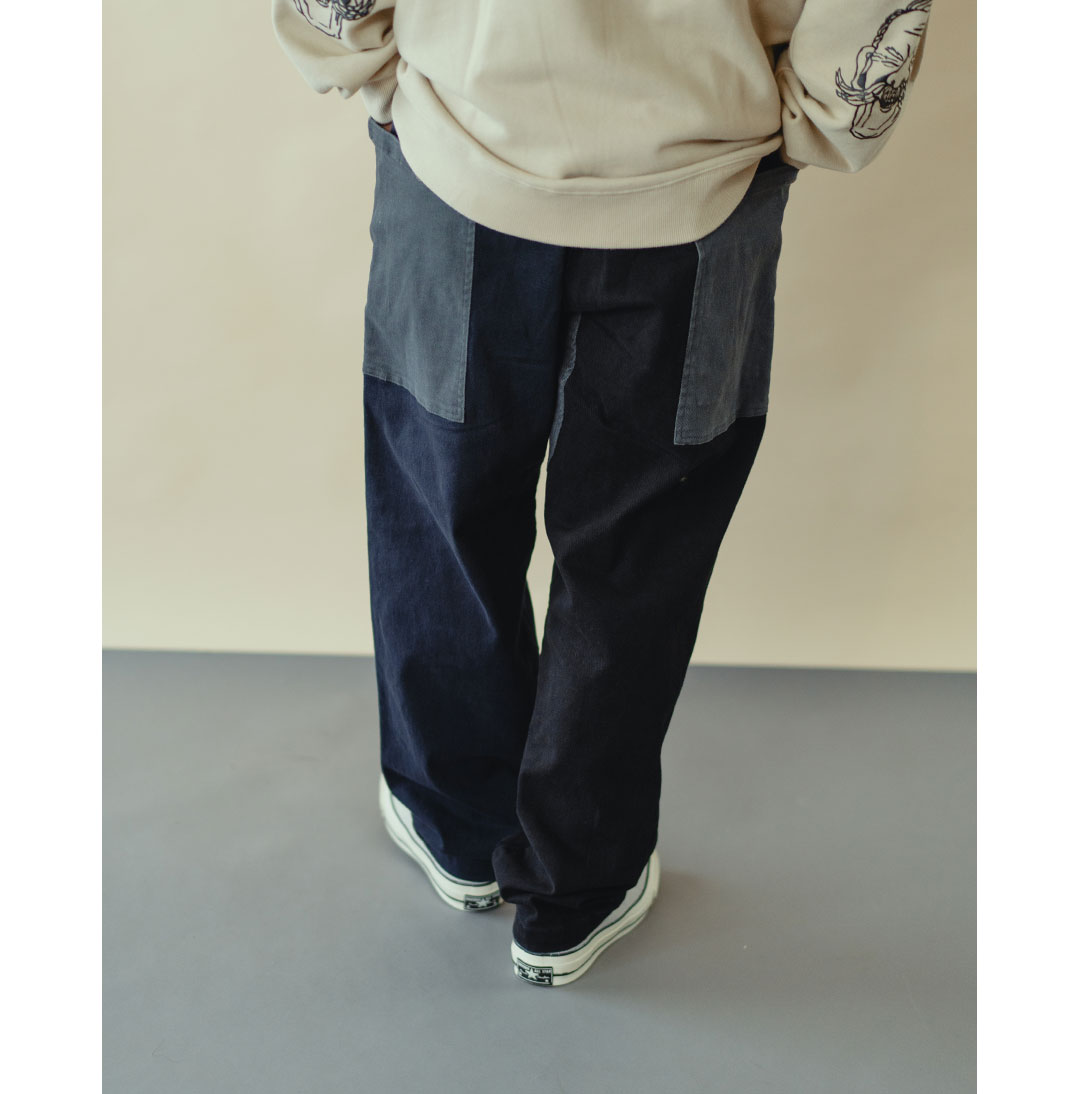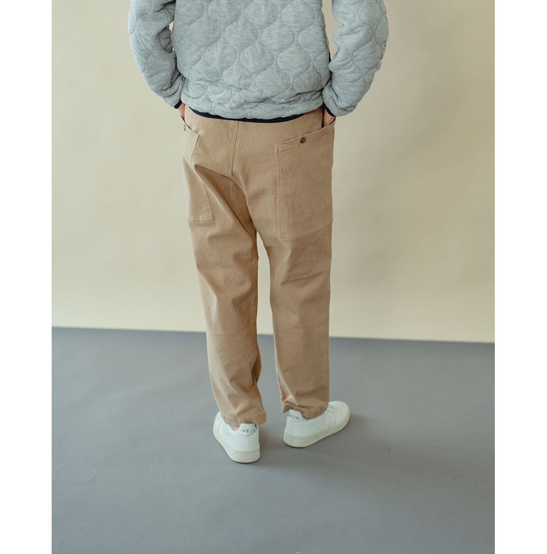 太番手の糸のステッチでパッチポケットになっておりベイカーパンツ風
