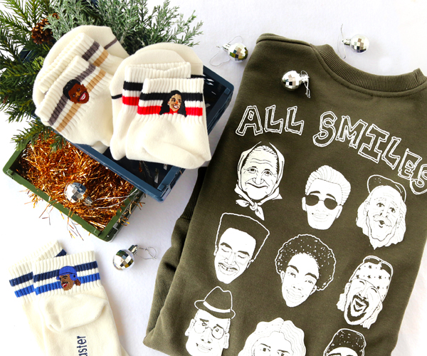 キャンプ好きの人に贈りたい焚火おじさんがヒジにプリントされたスウェットソロキャンプしてもテンションがあがるポップな靴下をセットで
