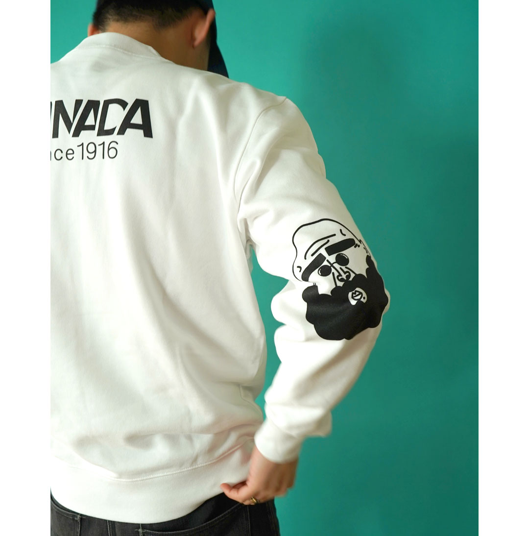 後ろにはシンプルなロゴと真面目な顔で冗談を言われてしまった様な