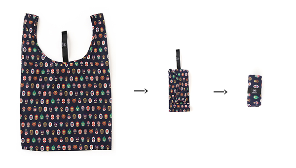 小さくポーズがきめると 持ち歩きも最適カラフルな総柄が魅力のエコバッグ簡単コンパクトにマジックテープがついています