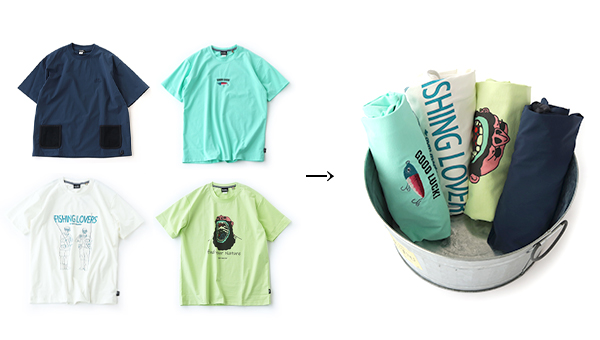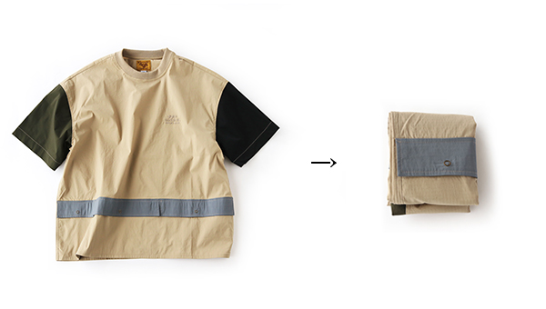 すぐ乾くのも嬉しいストレッチリップストップ素材ナイロン地のTシャツはたくさん便利なポケット付き