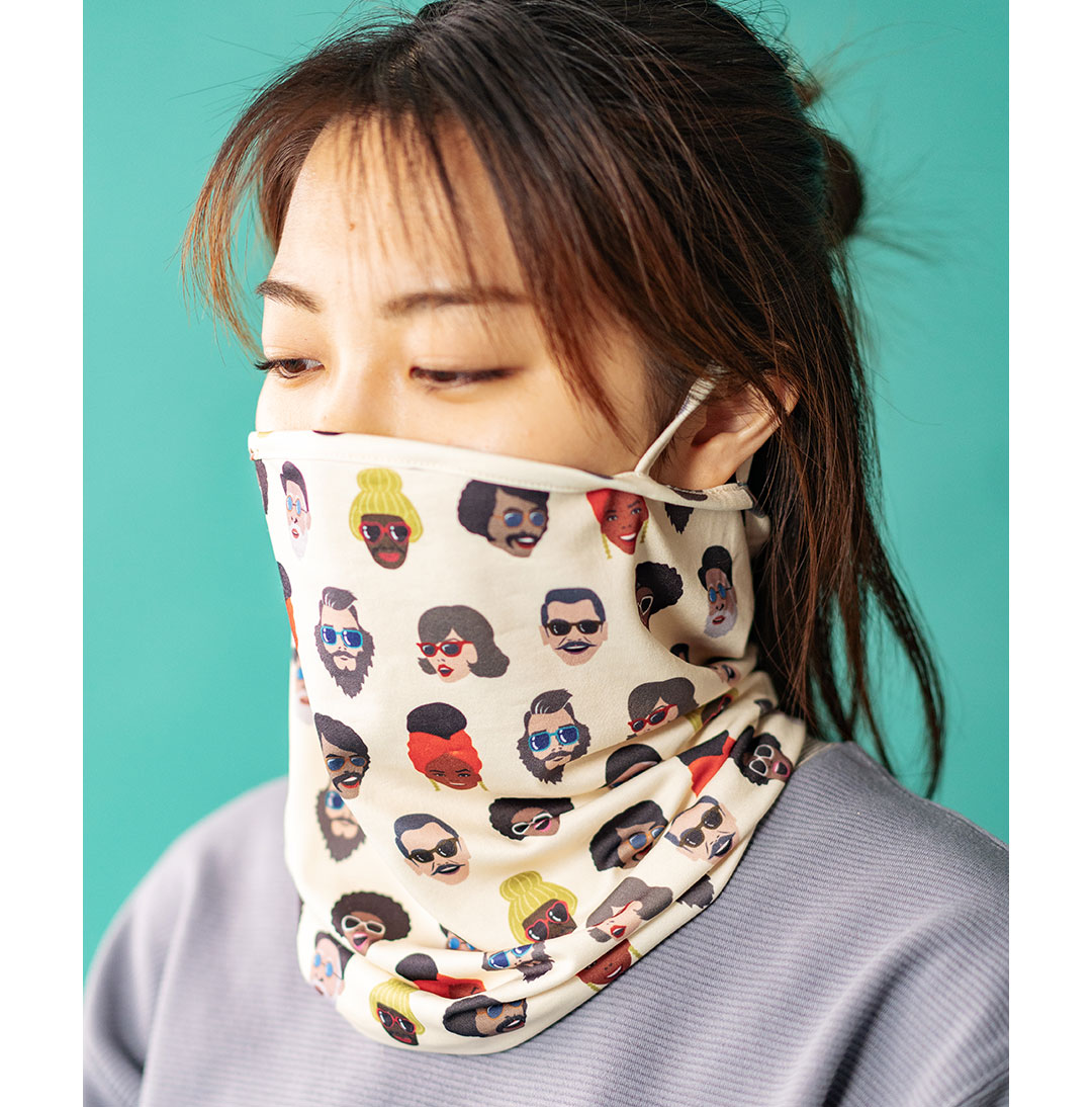 POPでカラフルな絵柄のネックゲイター!