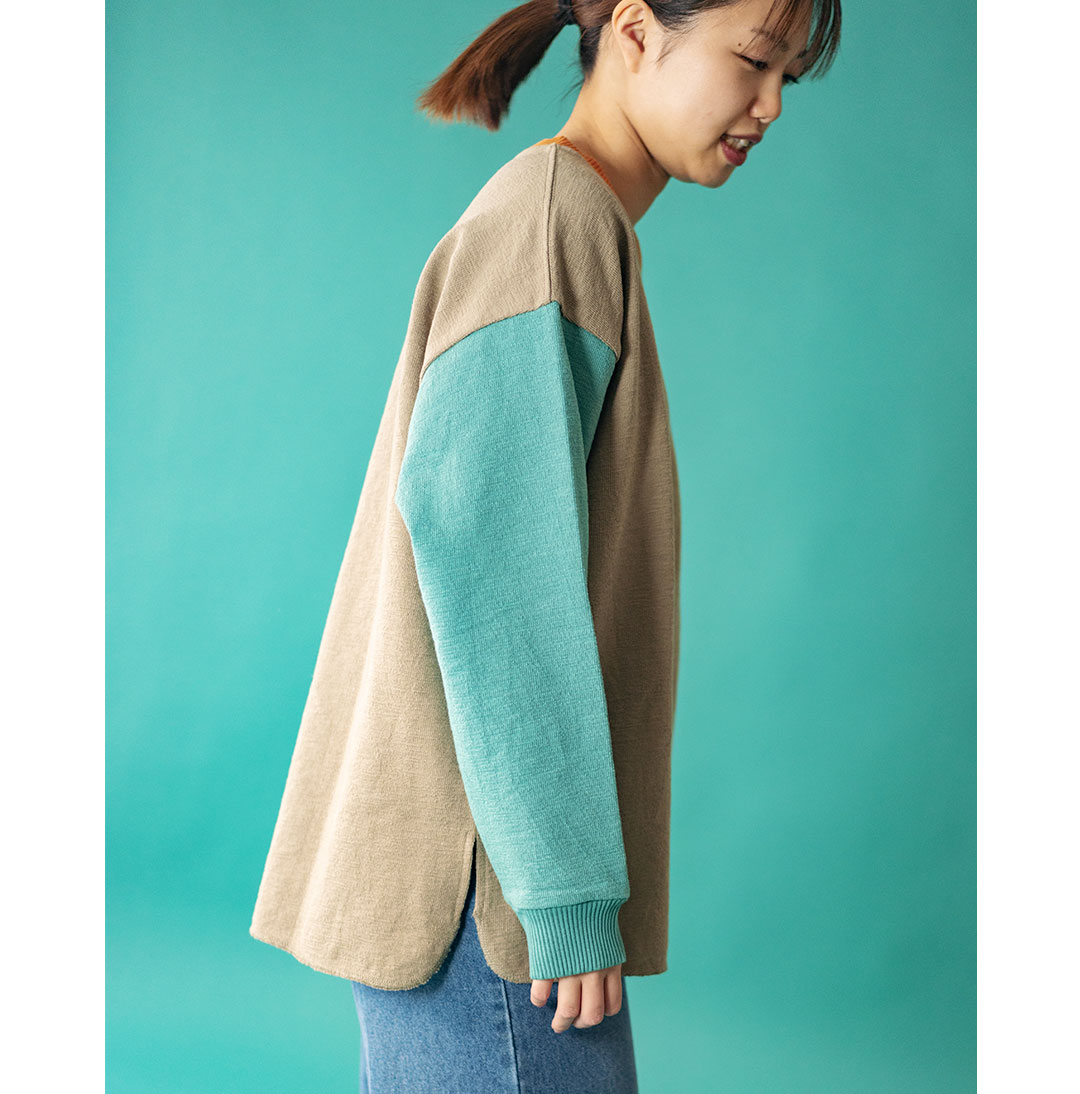 サイドにスリットで重ね着を楽しめるのもポイントの1枚です